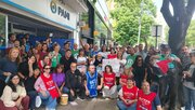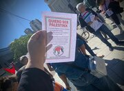 Acción de solidaridad impulsada en La Plata por la Multisectorial por Palestina, la CTA Provincia, la CTA Autónoma, la UTEP y organizaciones del campo popular