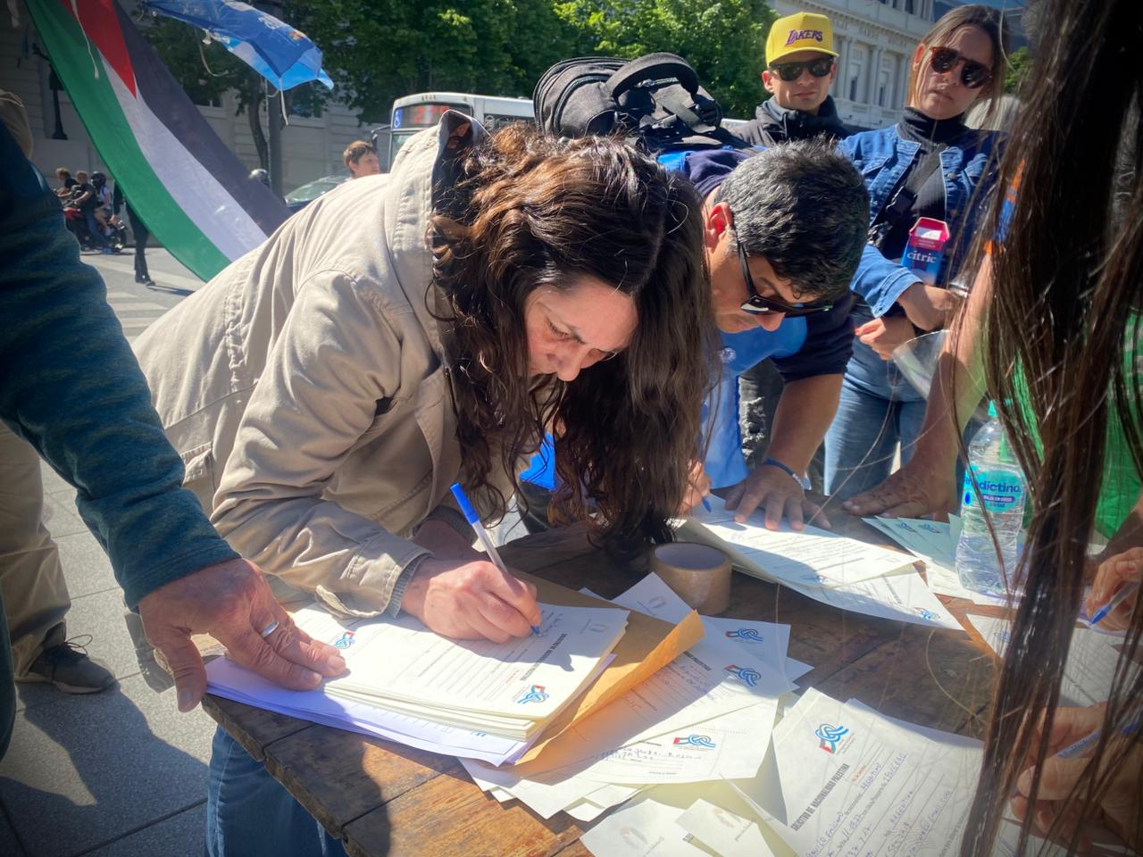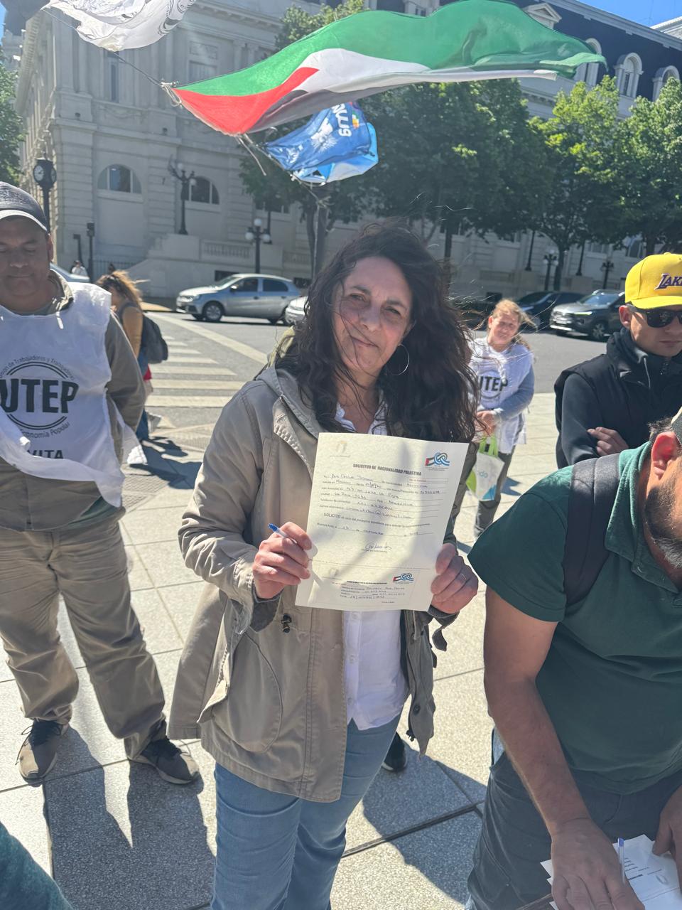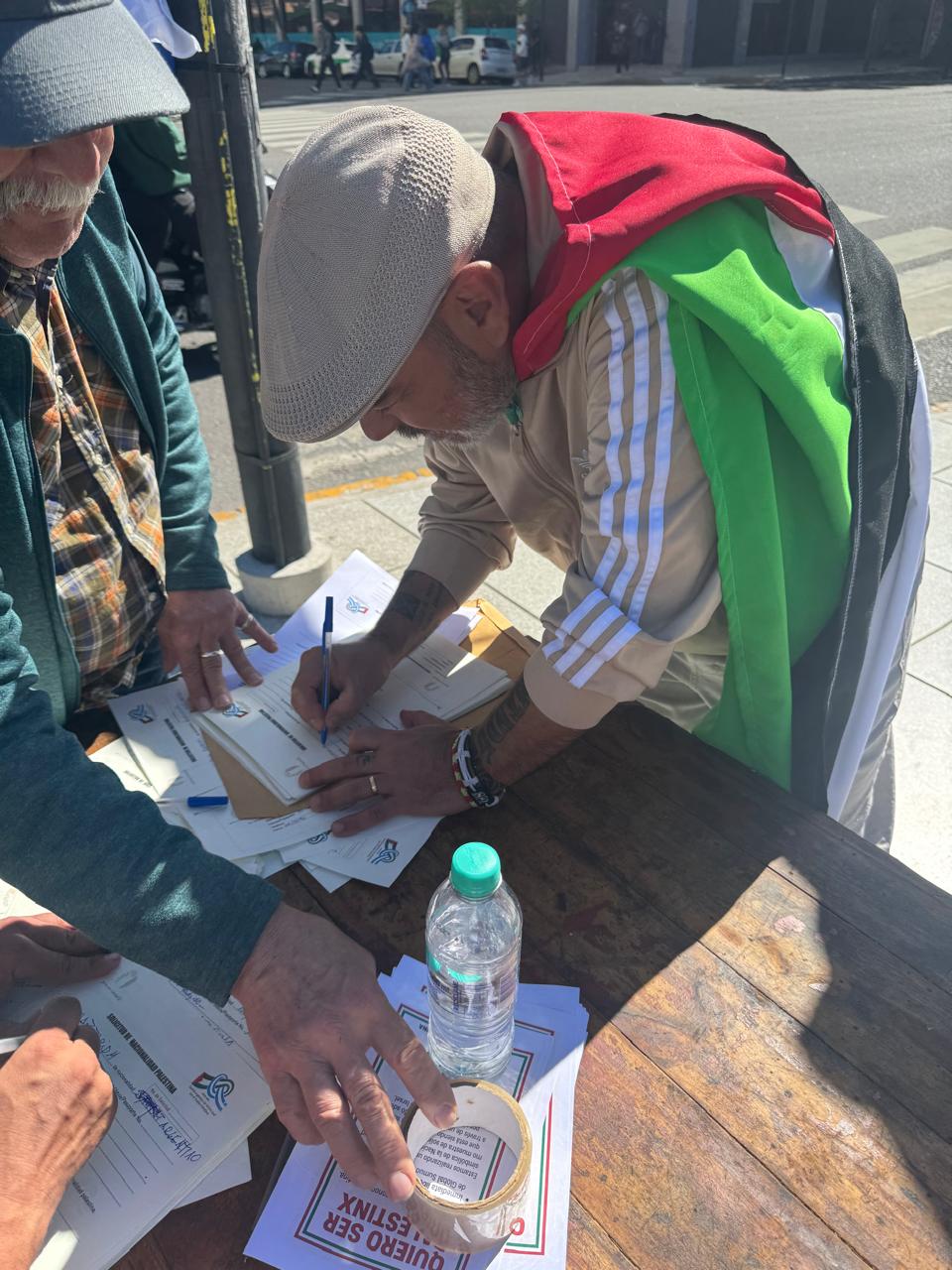 Durante la actividad, que se desarrolló en el centro platense, se realizaron volanteadas, se difundieron materiales informativos y se invitó a la comunidad a firmar la solicitud simbólica de ciudadanía palestina, como expresión de compromiso y empatía con un pueblo que resiste el despojo y la violencia genocida perpetrada por el gobierno sionista de Israel.