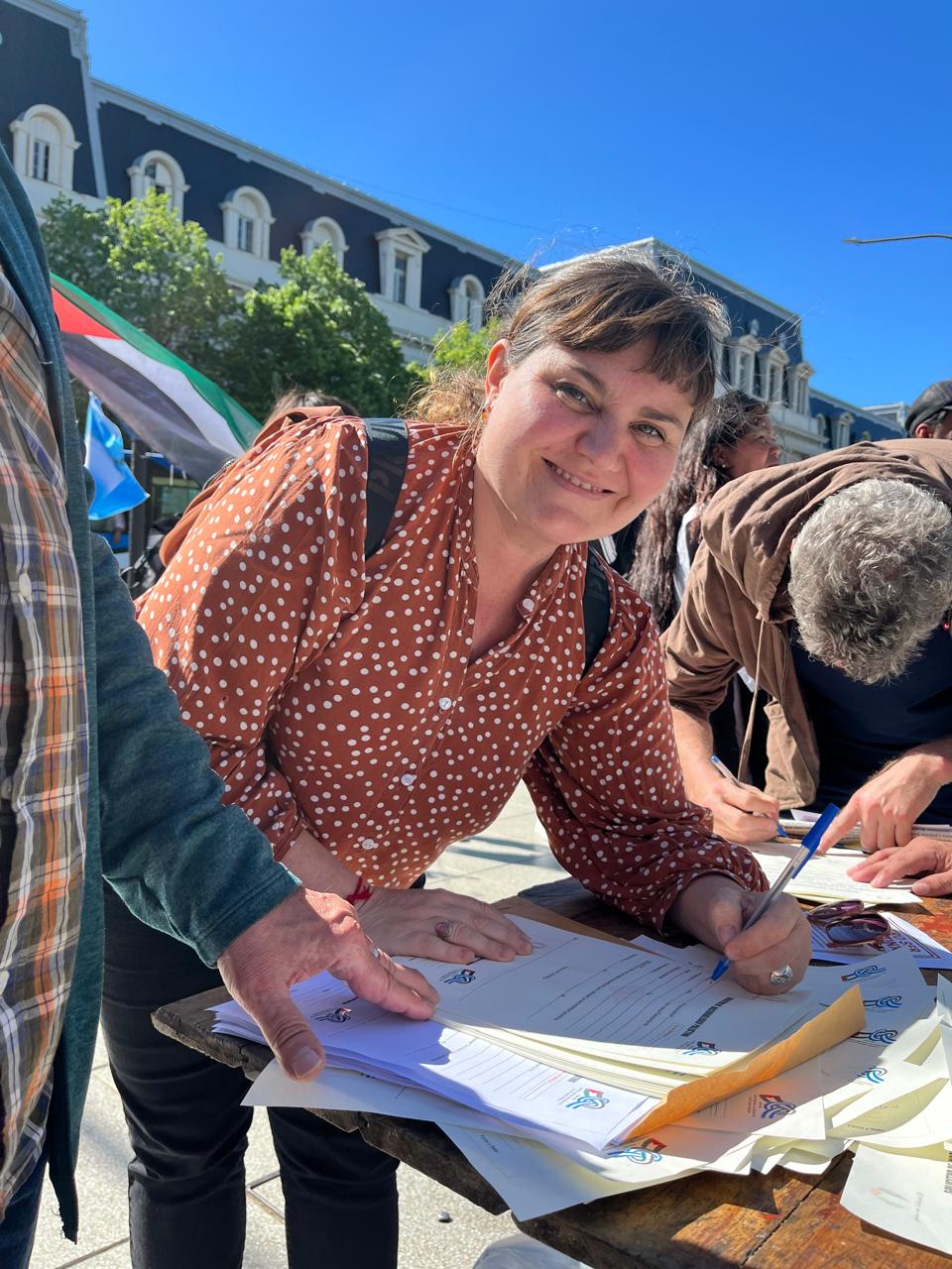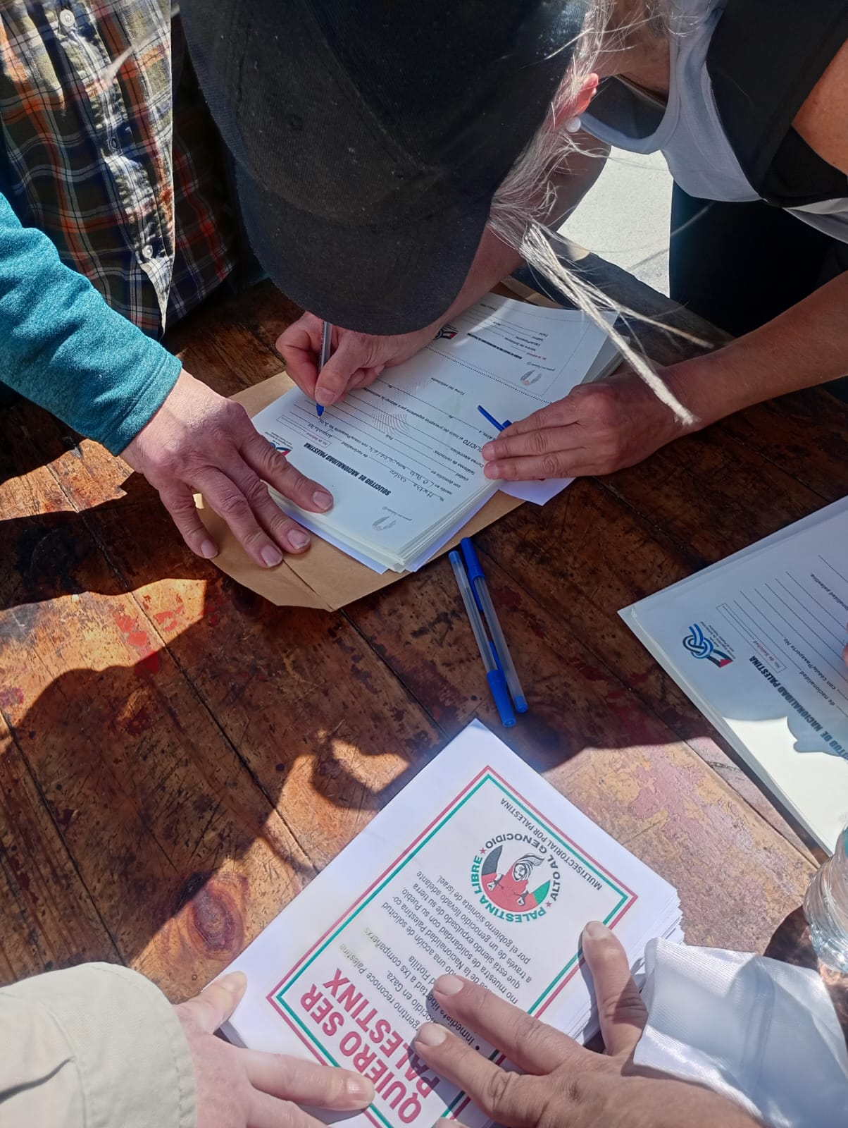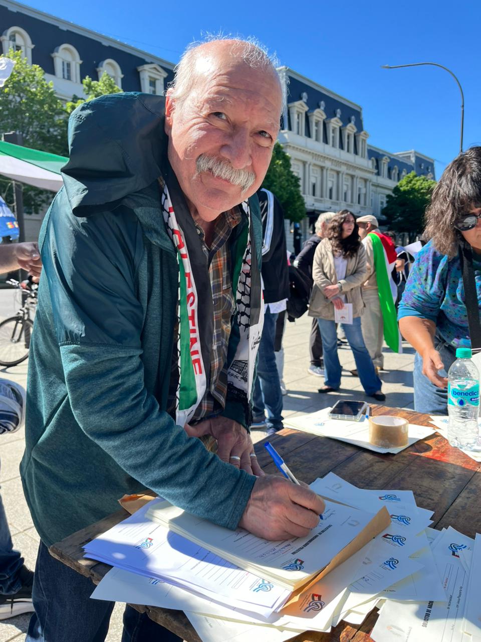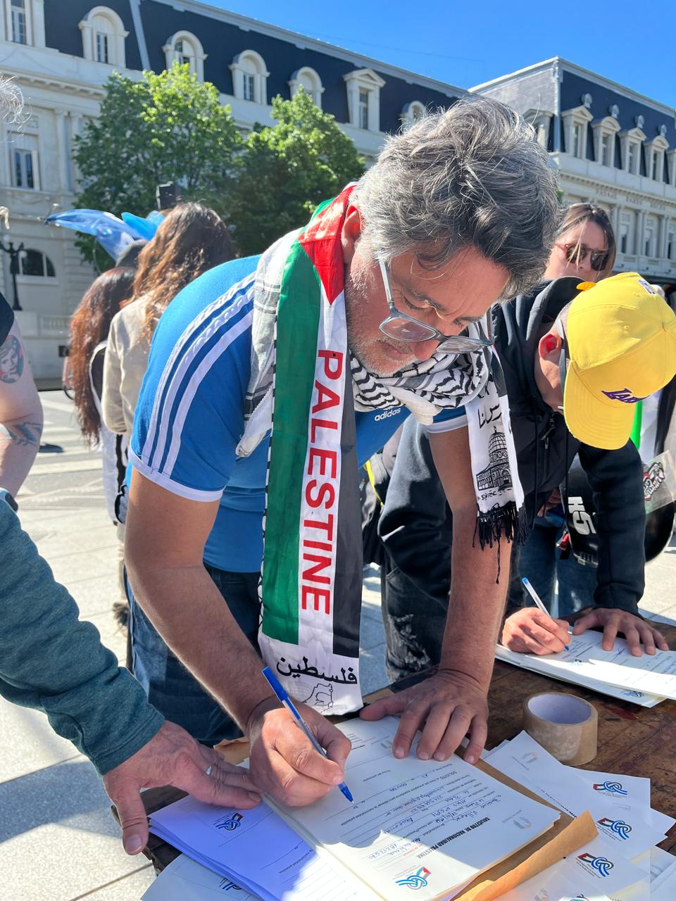 Durante la actividad, que se desarrolló en el centro platense, se realizaron volanteadas, se difundieron materiales informativos y se invitó a la comunidad a firmar la solicitud simbólica de ciudadanía palestina, como expresión de compromiso y empatía con un pueblo que resiste el despojo y la violencia genocida perpetrada por el gobierno sionista de Israel.
