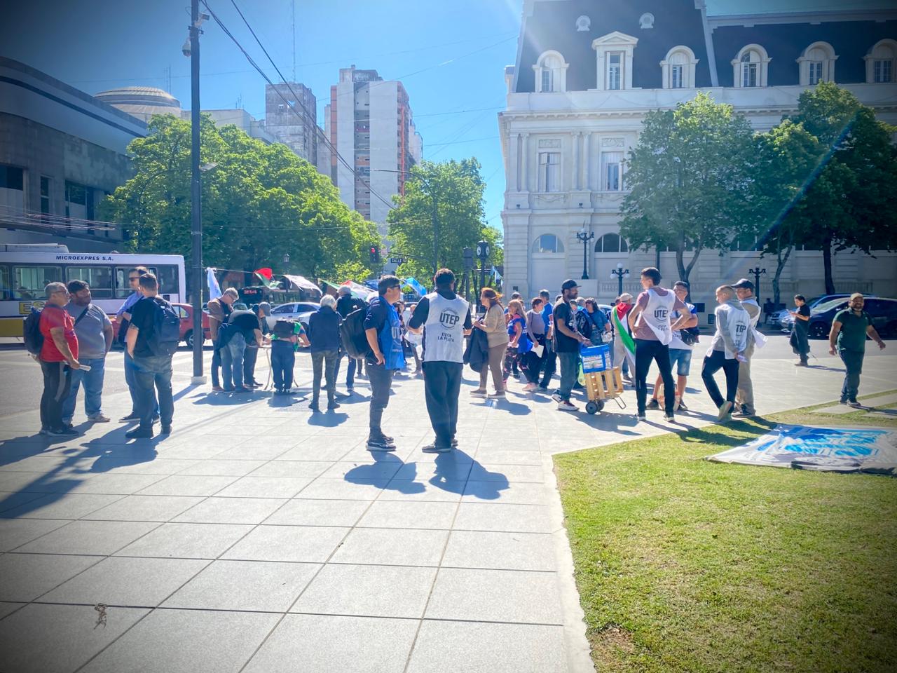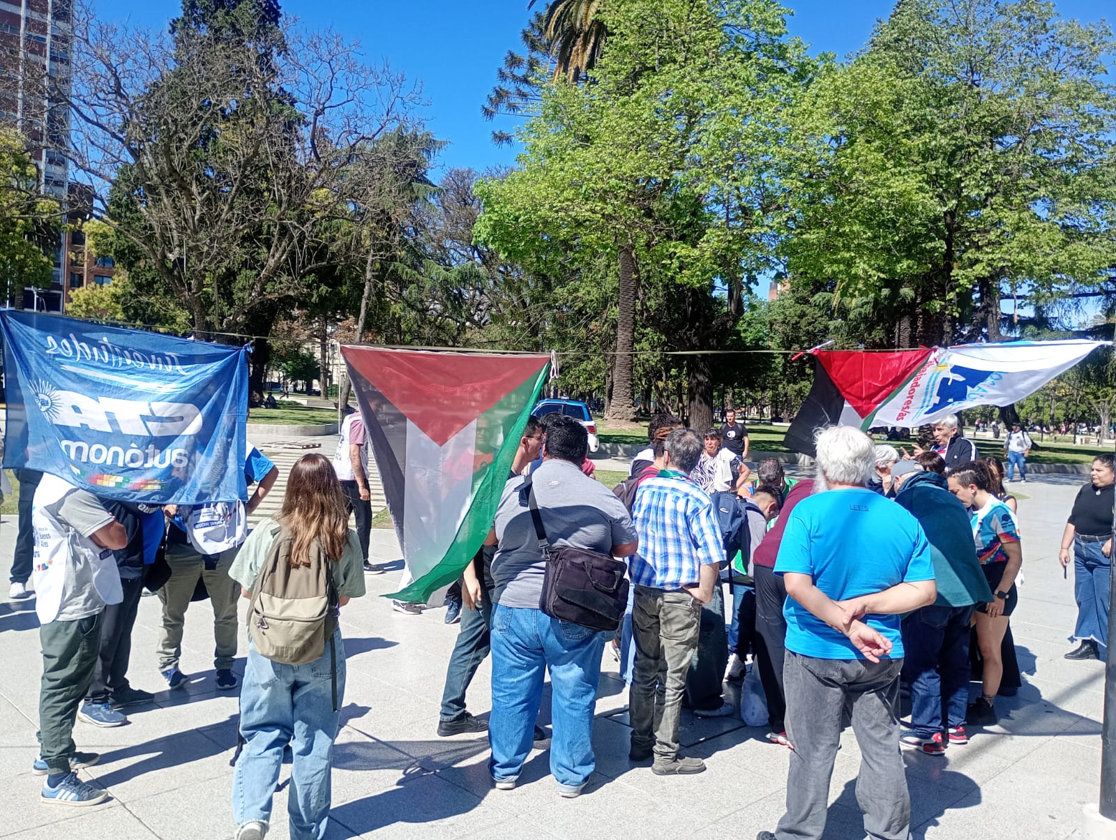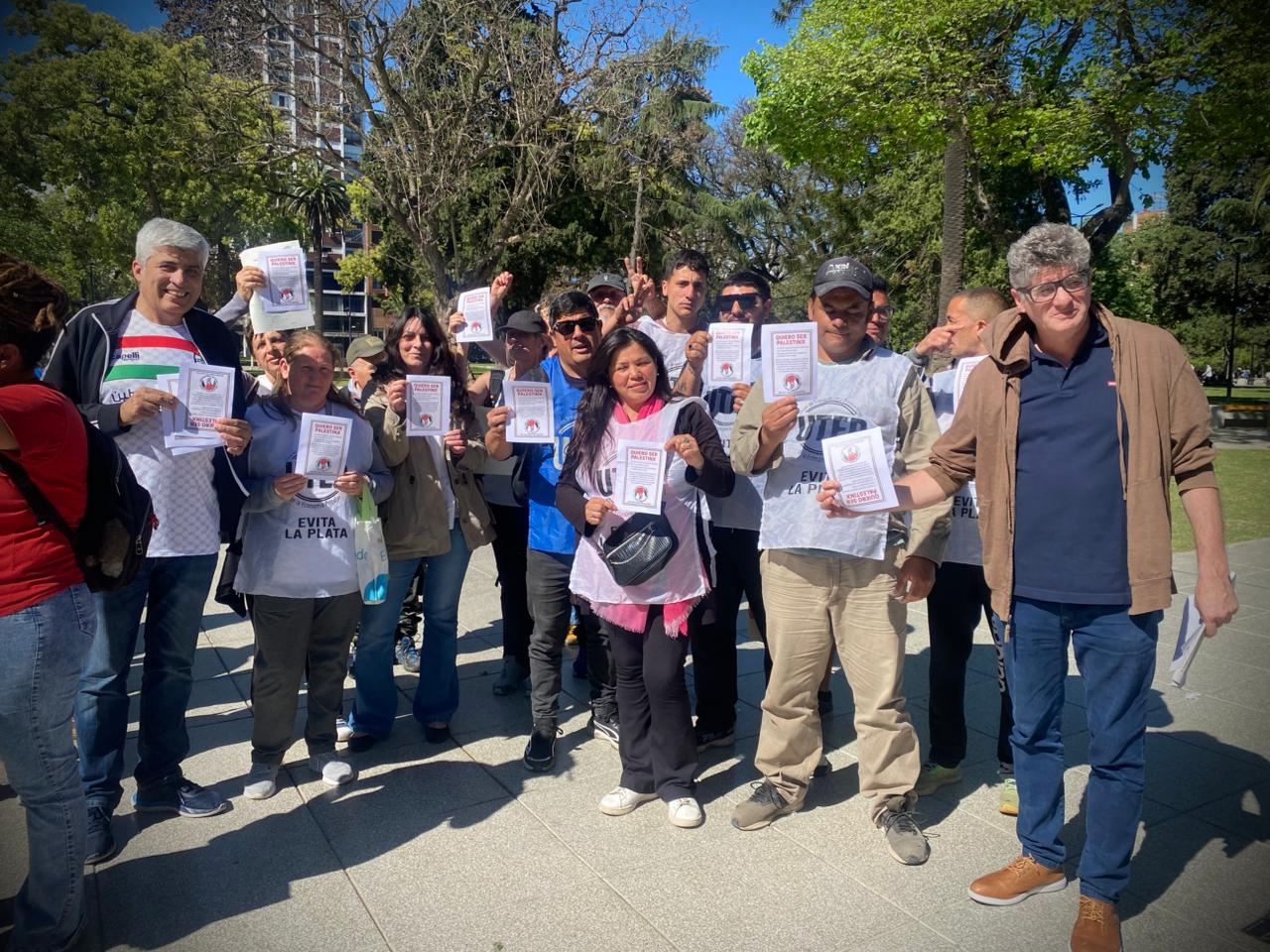 Acción de solidaridad impulsada en La Plata por la Multisectorial por Palestina, la CTA Provincia, la CTA Autónoma, la UTEP y organizaciones del campo popular
