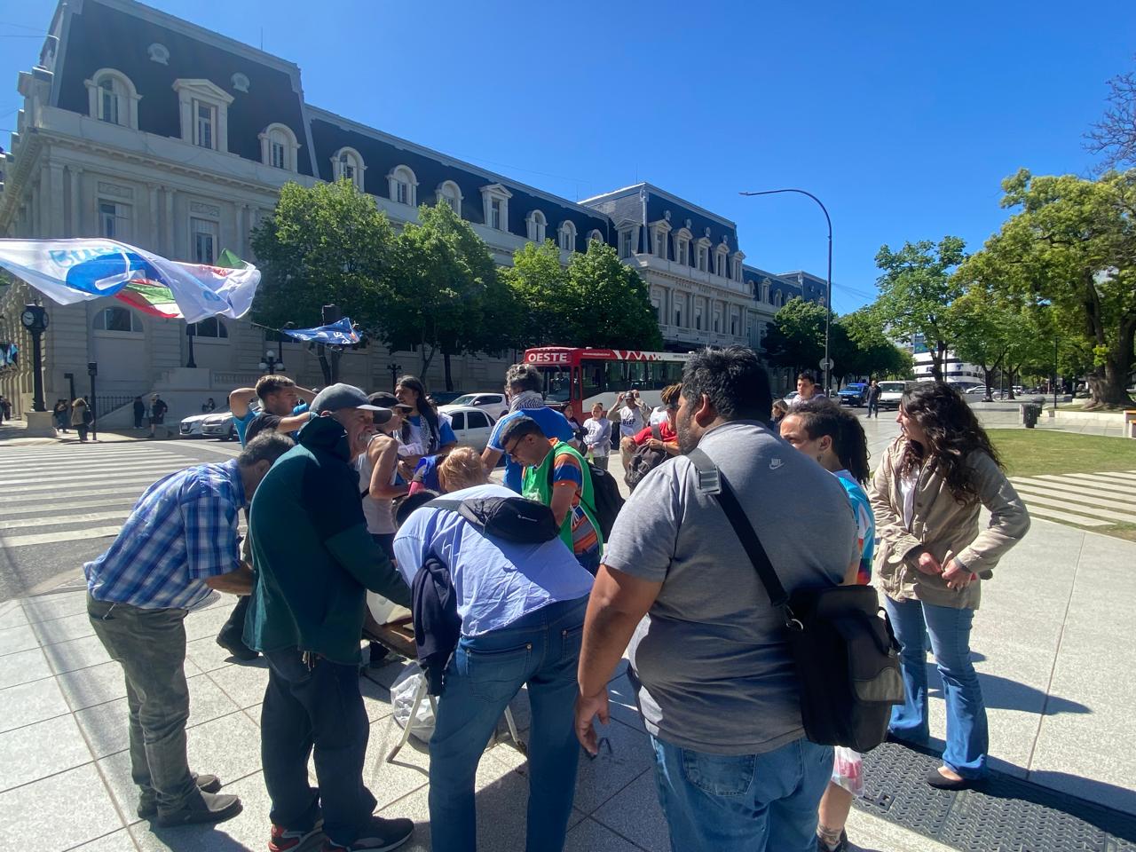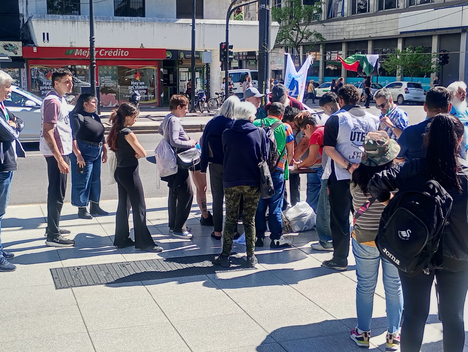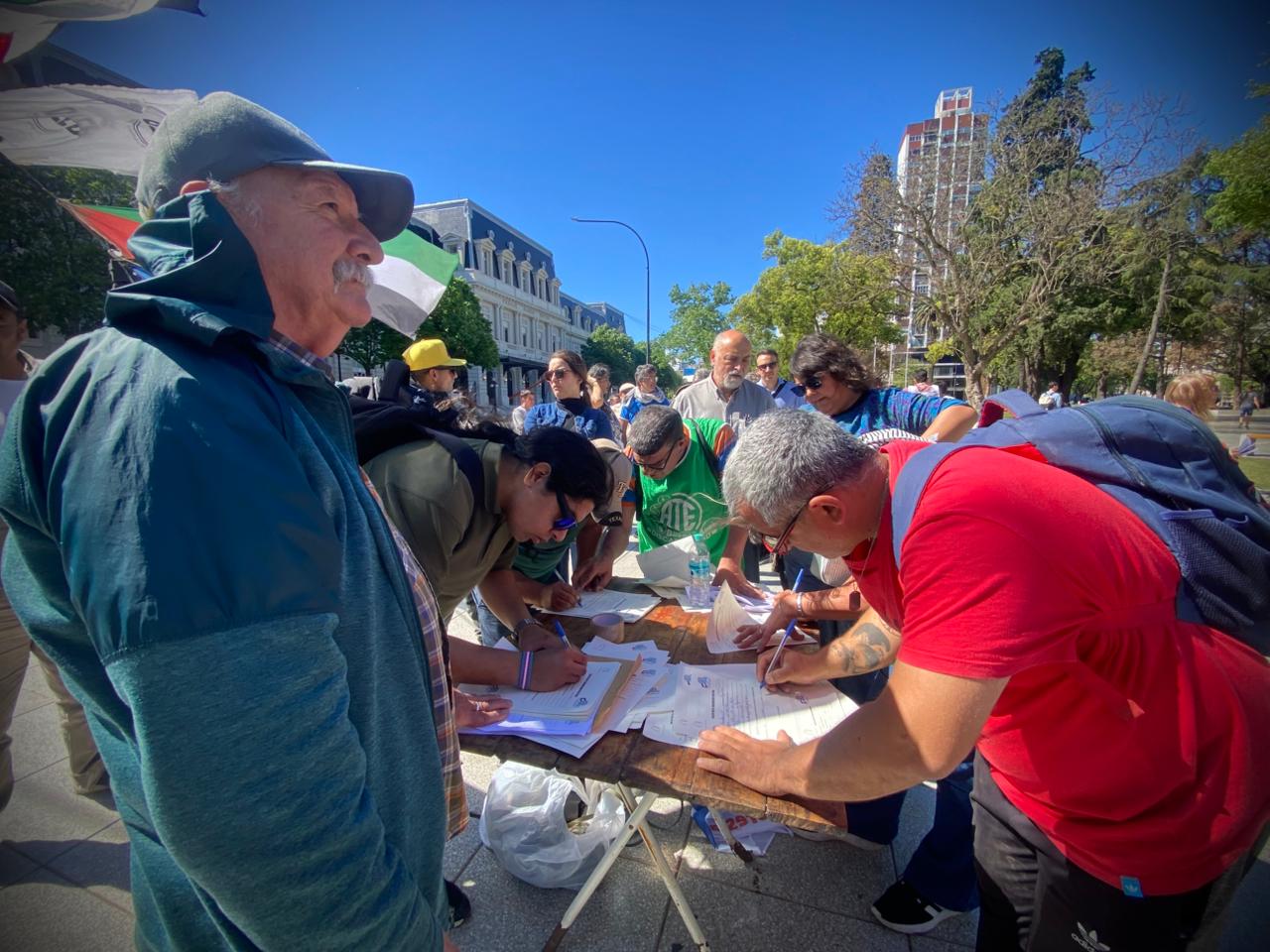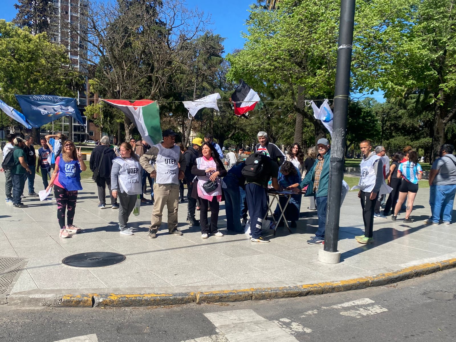 Acción de solidaridad impulsada en La Plata por la Multisectorial por Palestina, la CTA Provincia, la CTA Autónoma, la UTEP y organizaciones del campo popular