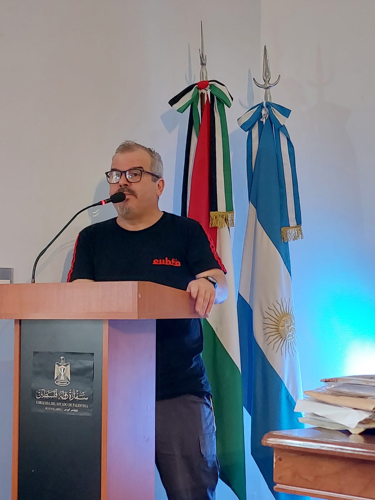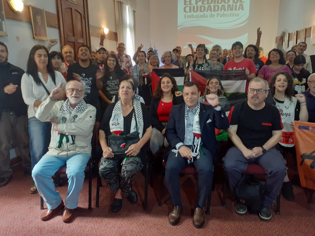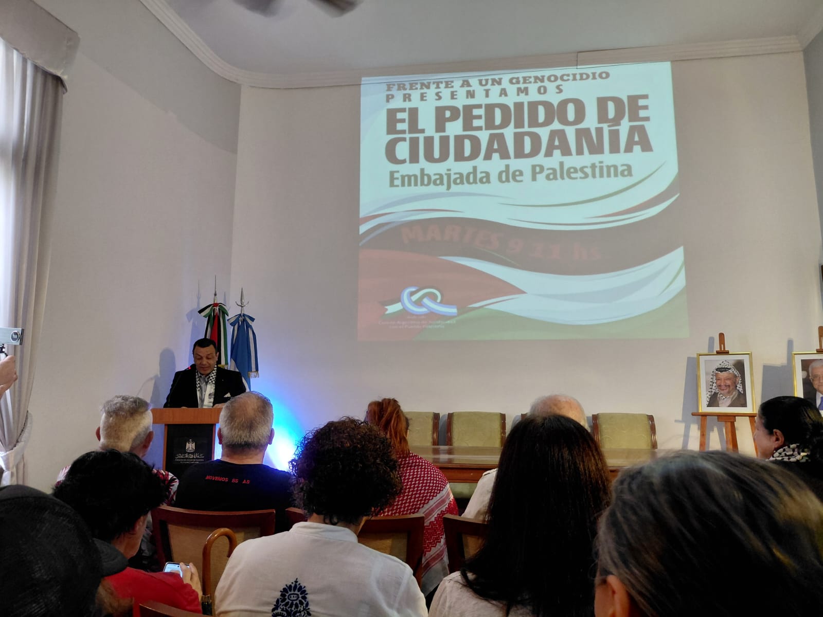 Es un verdadero honor recibirlos hoy en esta casa, la casa del pueblo palestino en la Argentina, en una jornada que expresa no solo un compromiso político, sino también un profundo gesto humano y ético: el lanzamiento y presentación del Pedido de Ciudadanía Palestina como acto simbólico de acompañamiento frente al genocidio que sufre nuestro pueblo.
